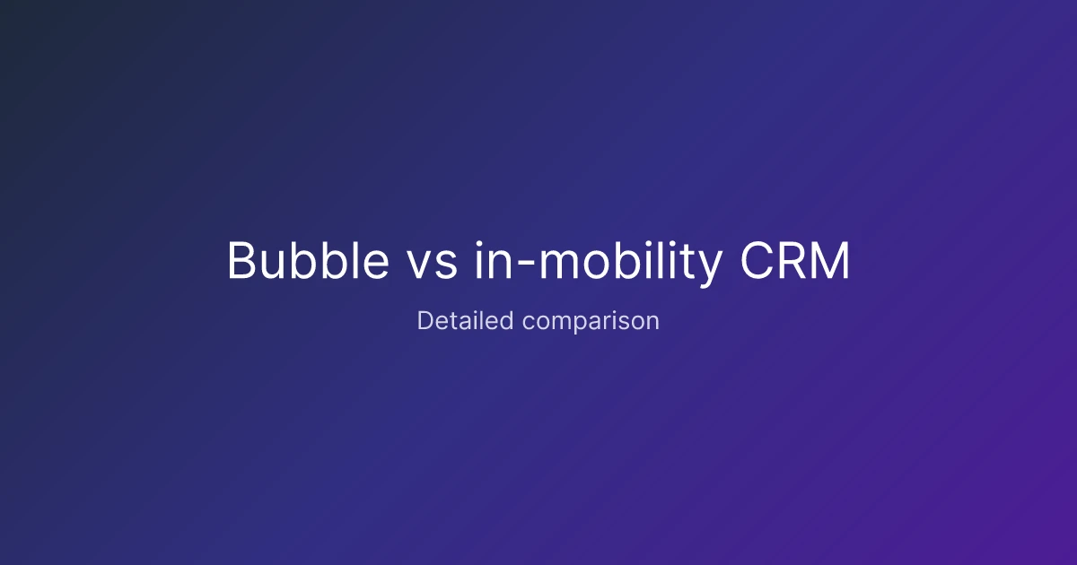 Bubble offers No-code platform to build web applications with a visual editor. Create custom workflows, databases, and responsive UIs without coding. Hosted on Bubble's cloud. and is perfect for businesses of all sizes, whereas in-mobility CRM offers Mobile-first CRM platform with sales automation and field service management. and is ideal for businesses of all sizes.